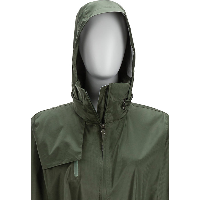 - 3-piece hood stows into stand up collar with concealed closure